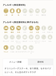 メニューの詳細、栄養成分、アレルギーなども細かく見ることが出来ます。